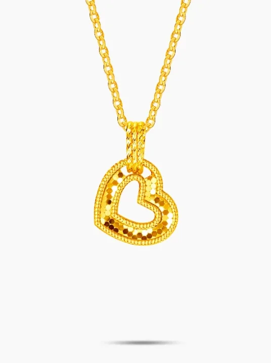 The LVC 9IN Radiant Heart 999 Gold Necklace is a masterpiece of elegance and purity. Crafted from 999 gold, also known as 24-karat gold, it represents the highest level of gold purity available. Featuring a radiant heart design, this necklace symbolizes love and brilliance, making it the perfect gift for celebrating milestones or expressing heartfelt emotions. Designed for timeless appeal, the necklace combines modern sophistication with enduring quality, ensuring it remains a cherished piece for generations.