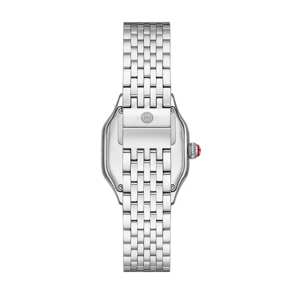 Crafted from stainless steel, the watch includes a 14mm seven-link bracelet, which is interchangeable with any 14mm Michele strap for versatile styling. Powered by Swiss quartz movement and protected by a sapphire crystal, it ensures precision and durability.